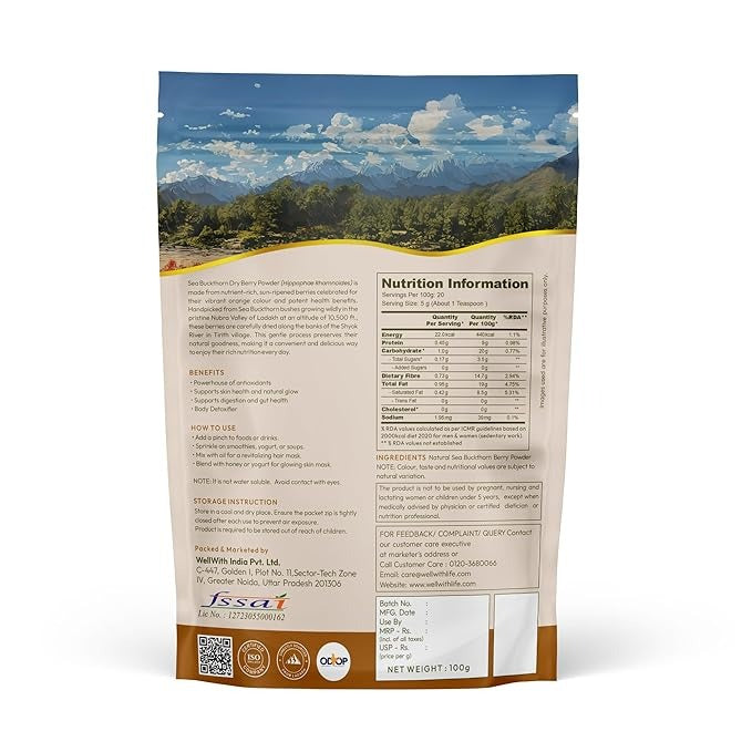 - Packed with Omega-7, Sea Buckthorn berry is a key ingredient for maintaining skin health. Incorporating our Sea Buckthorn powder into your diet and wellness routine is an excellent choice for healthy skin.