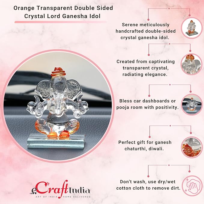 • Package Content - One Orange and Transparent Double Sided Crystal Car Ganesha Showpiece
