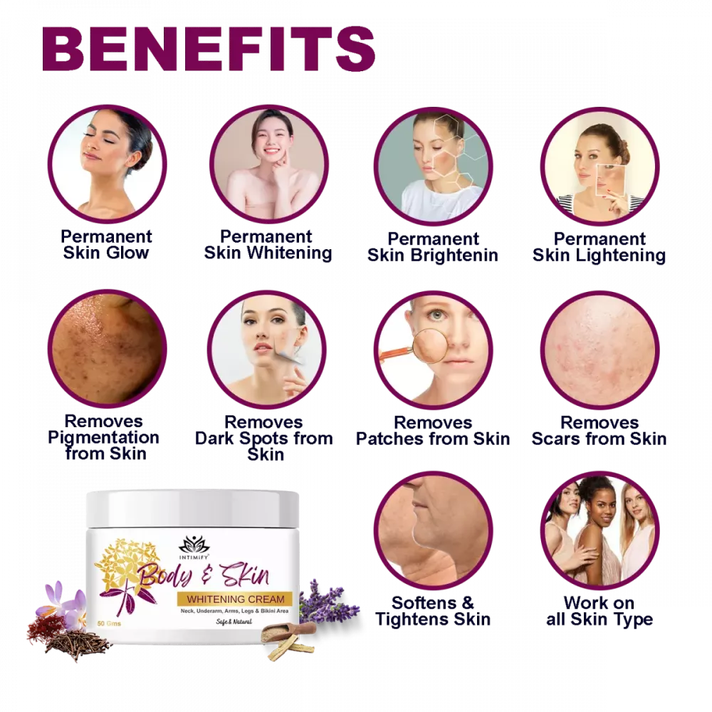 - Intimify body & skin whitening cream moisturises the skin exceptionally well.