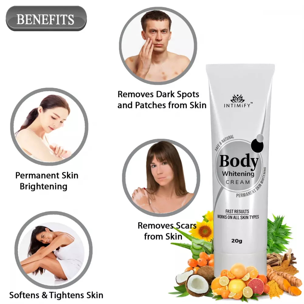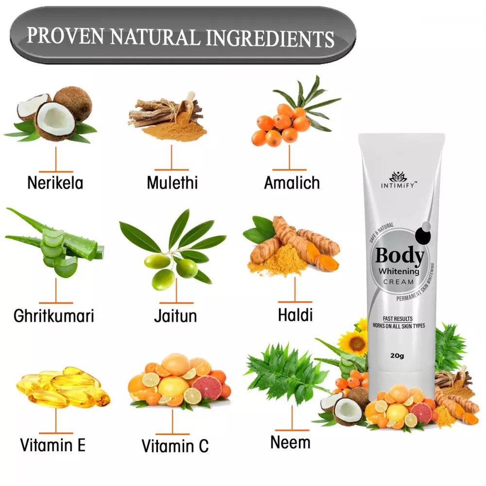 • Intimify herbal body whitening cream may help to fight skin dark spots and pigmentation as it works on all skin types.