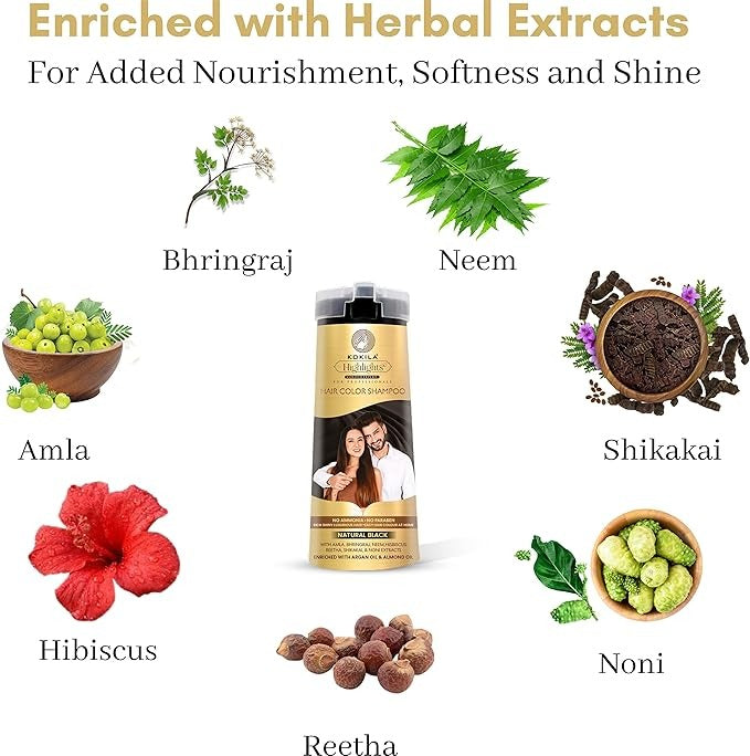 Kokila Hair Color Shampoo for Men & Women Natural Black - 200 ml
