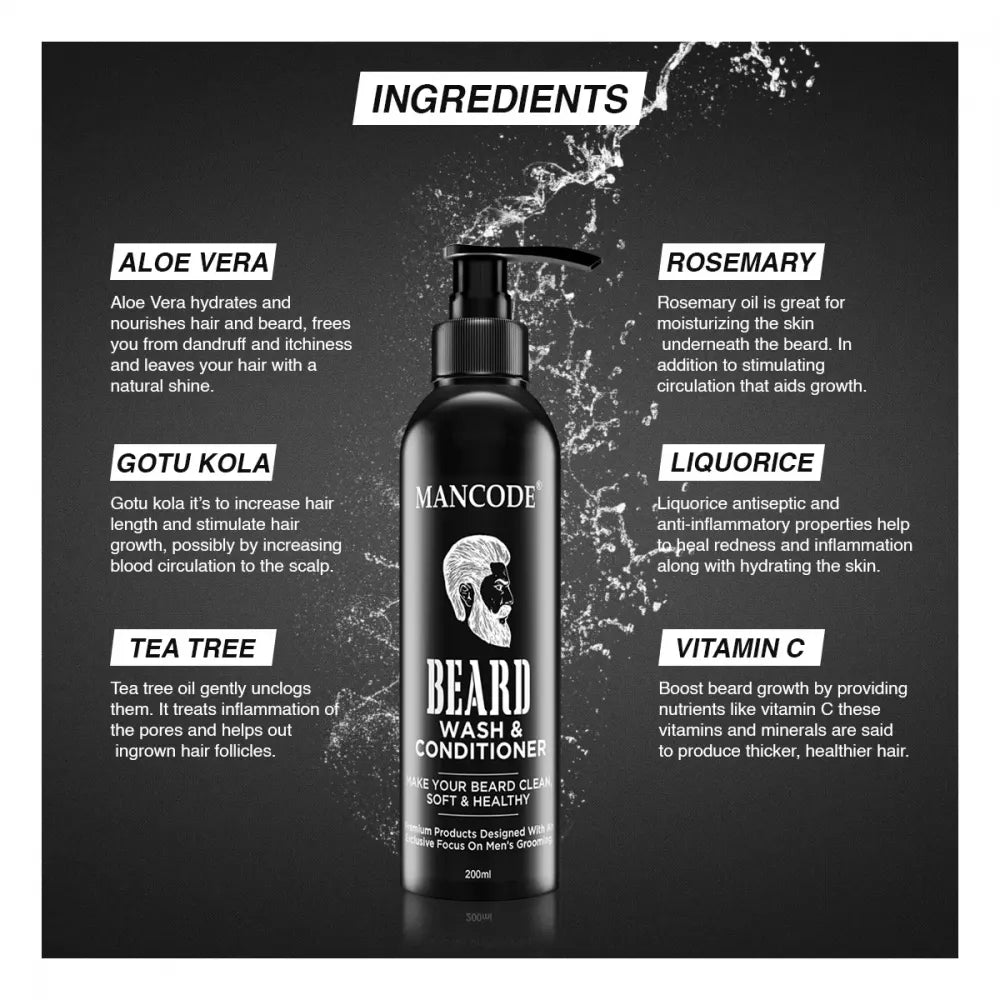 • Mancode beard wash & conditioner is a product that aids in the maintenance of a clean and neat beard.