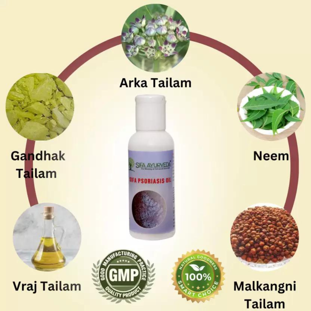 • Sifa ayurveda psoriasis oil is crafted with care using botanical extracts and essential oils, the formula is designed to help alleviate itching, redness, and inflammation associated with these skin conditions.