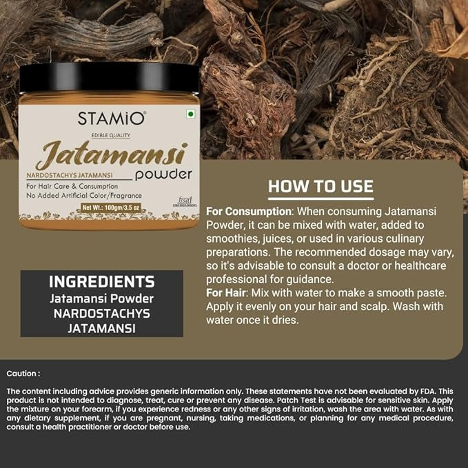 • Package Contents: 100gm Pure & Natural Jatamansi Powder - Edible Quality