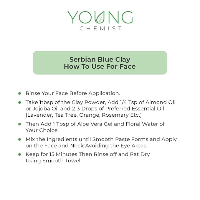 • Restores Skin Nutrients - Blue Cambrian Blue Clay Powder is filled with essential mineral salts, micro, and macro-elements that nourish the skin and make it healthy. These nutrients may refresh the skin making it soft.
