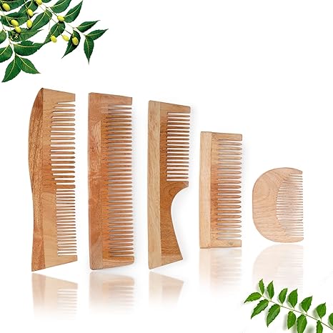 Insime Neem Wooden Comb set Hair comb set combo Premium women hair growth comb set (Set of 5)