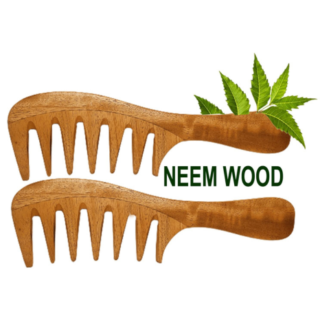 Rufiya Wooden Comb for Women Hair Growth Wood Wide Tooth Detangler for Curly Hair Combo Pack of 2
