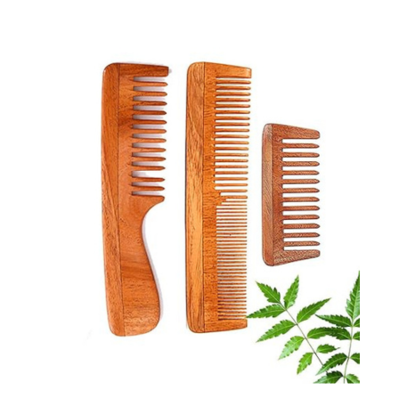 Rufiys Pure Neem Wooden Comb for Women & Men Helps Hair Growth Dandruff Remover (Combo of 3)