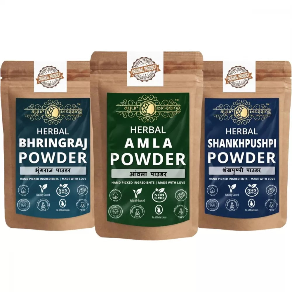 Ayur Blessing Herbal Amla & Bhringraj & Shankhpushpi Powder Combo