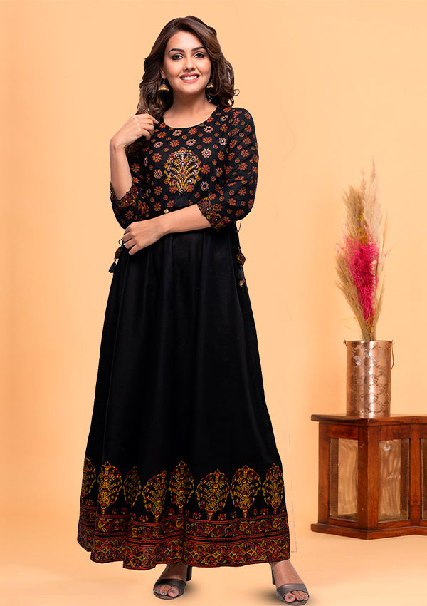 Kaajh Black Embroidery Printed Rayon Ethnic Gown