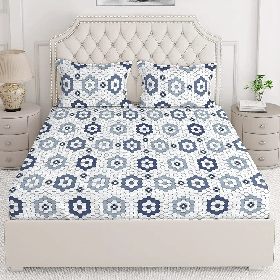 Layers Firenze Cotton Bedsheet Set for All Seasons Lightweight 140 TC Queen Size White & Blue