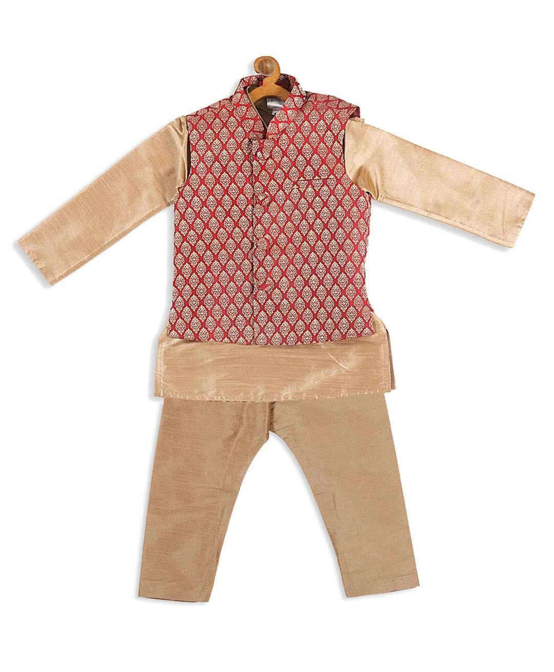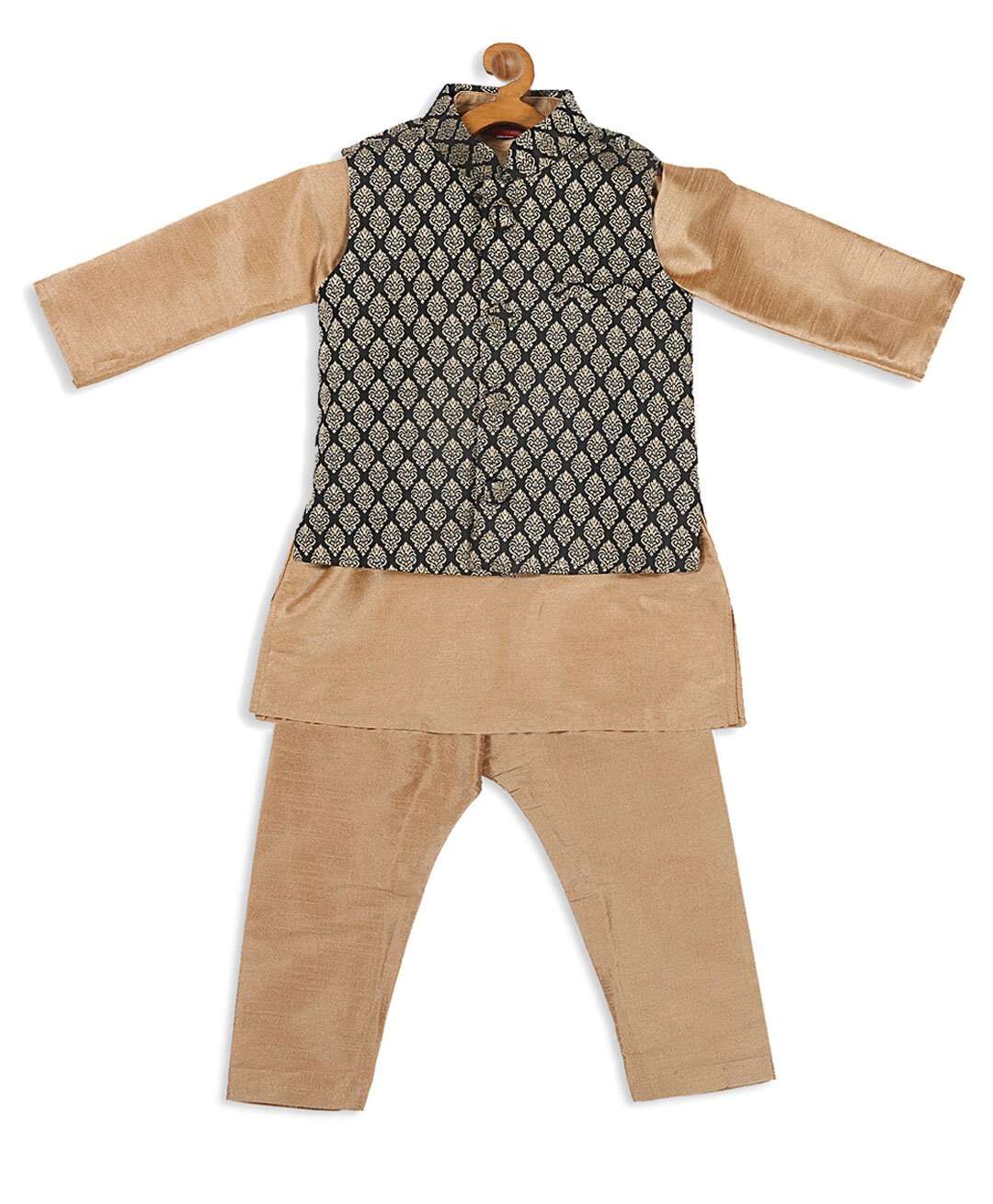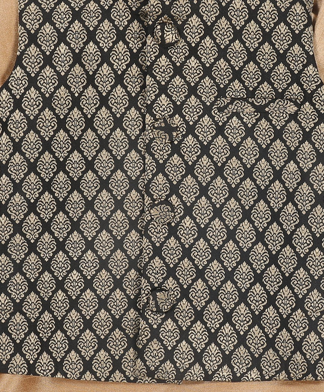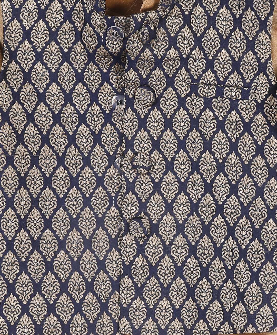 VASTRAMAY SISHU Full Sleeves Solid Kurta & Pyjama With Damask Motif Printed Nehru Jacket - Rose Gold & Blue