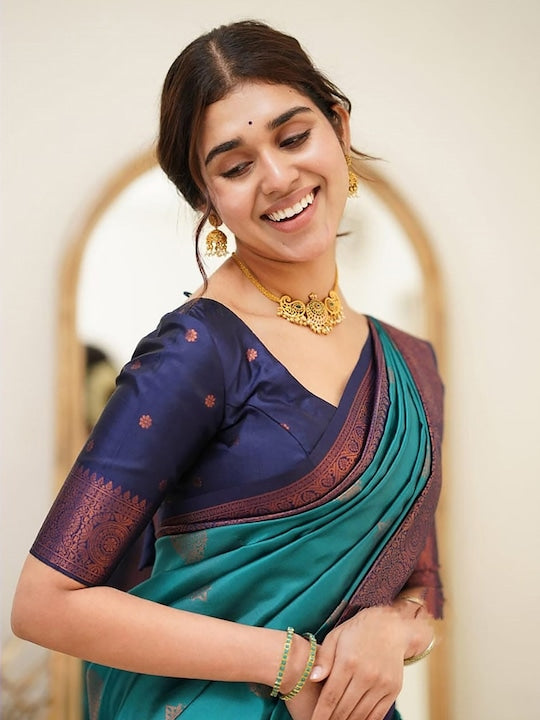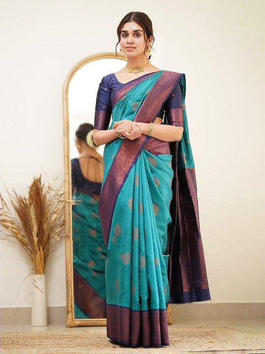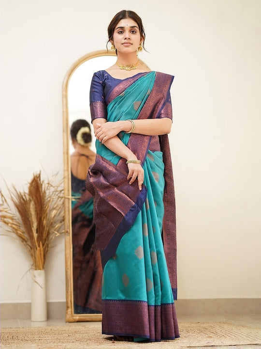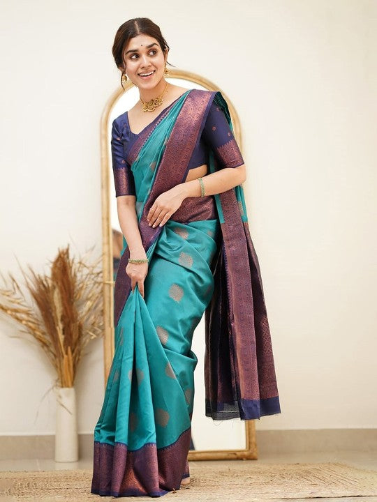Anjaneya Sarees Ethnic Motif Woven Design Zari Banarasi Saree