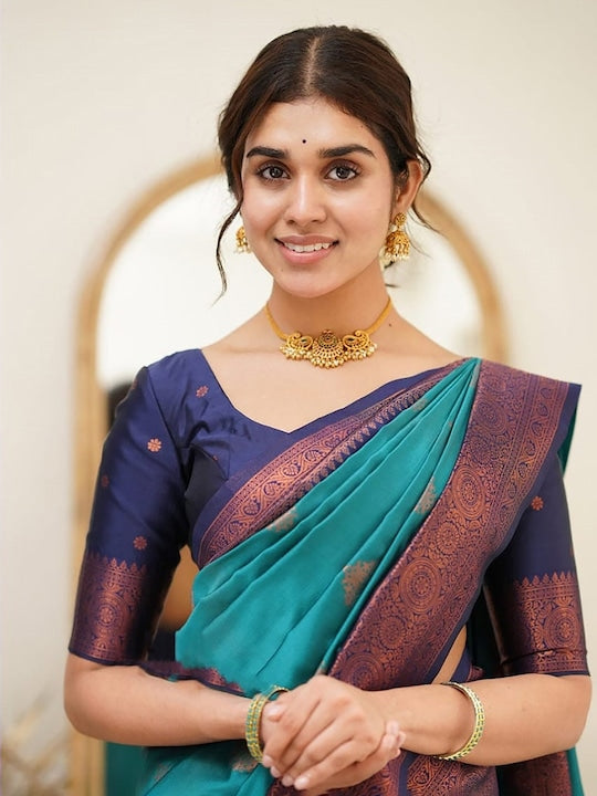 • The blouse worn by the model might be for modelling purpose only. Check the image of the blouse piece to understand how the actual blouse piece looks like.