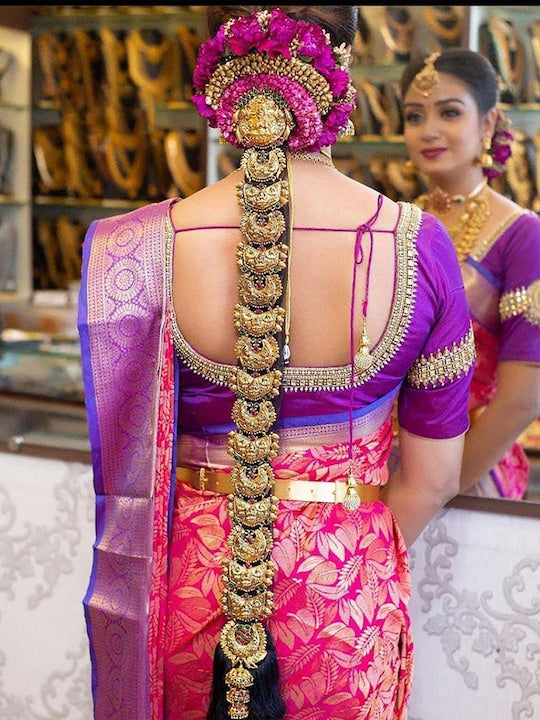 - The blouse worn by the model might be for modelling purpose only. Check the image of the blouse piece to understand how the actual blouse piece looks like.