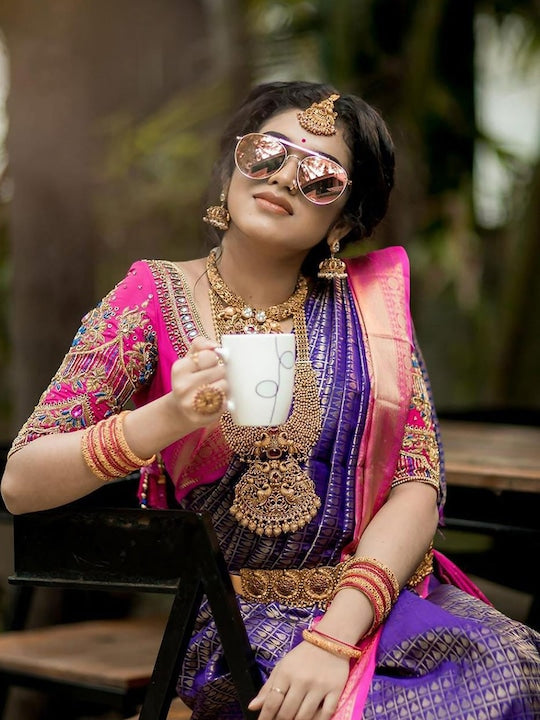 • The blouse worn by the model might be for modelling purpose only. Check the image of the blouse piece to understand how the actual blouse piece looks like.