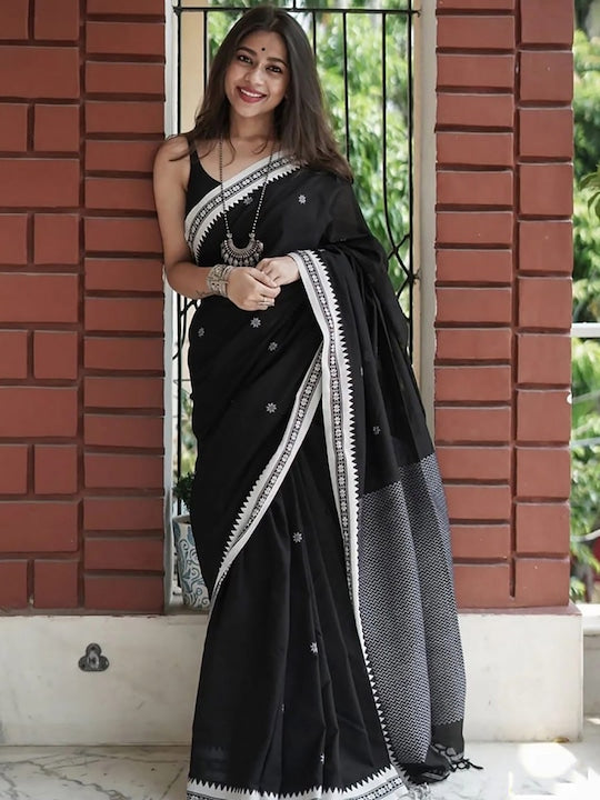 - Woven design saree with woven design border