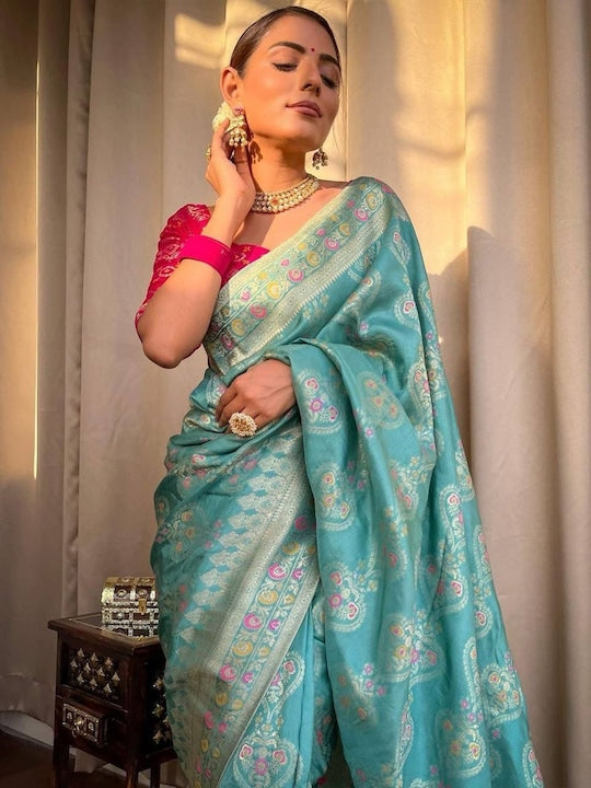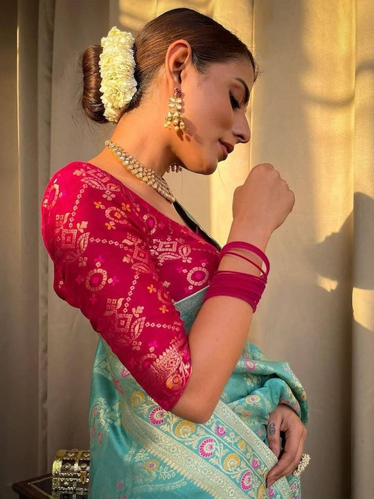 • The blouse worn by the model might be for modelling purpose only. Check the image of the blouse piece to understand how the actual blouse piece looks like.