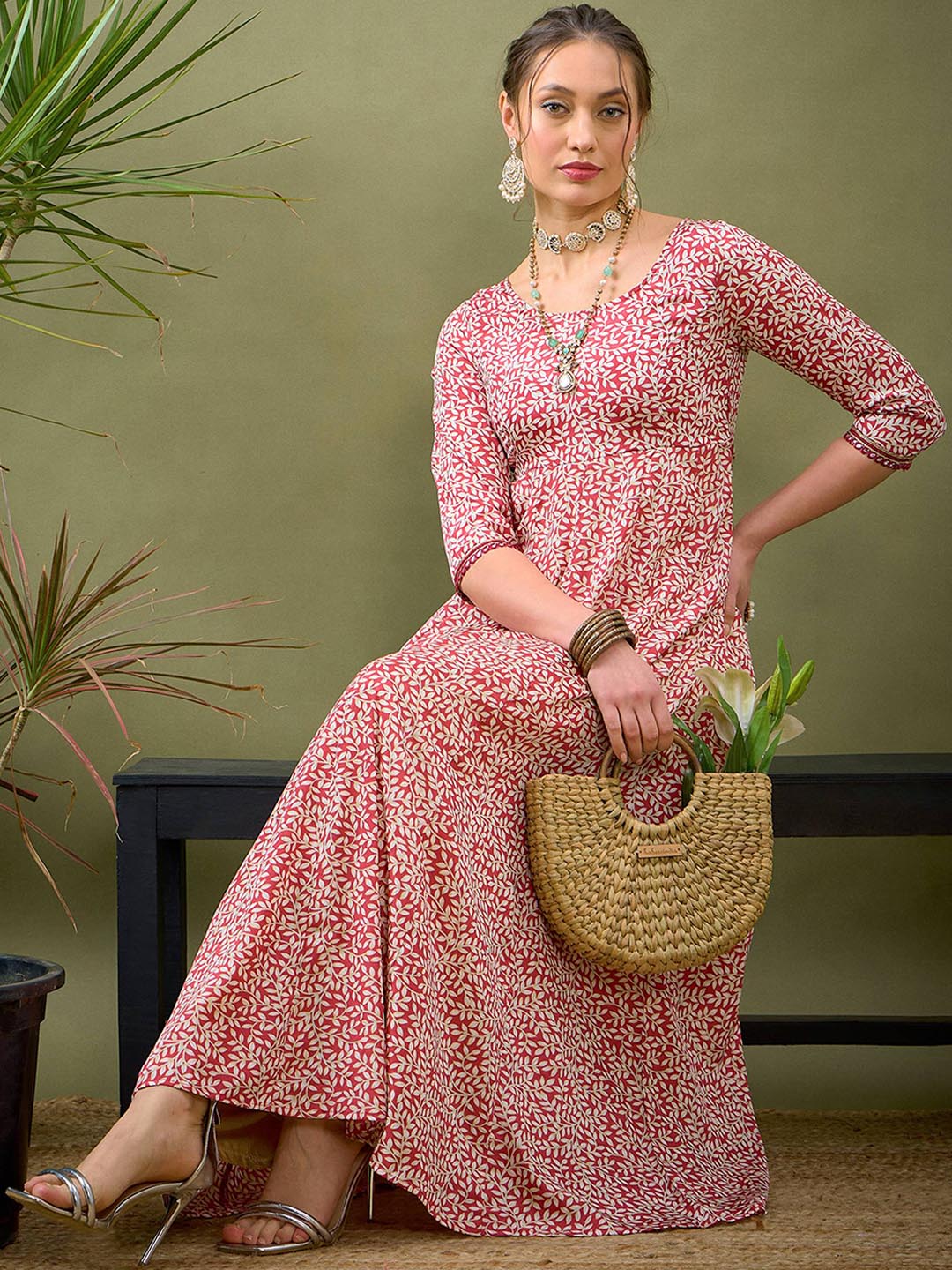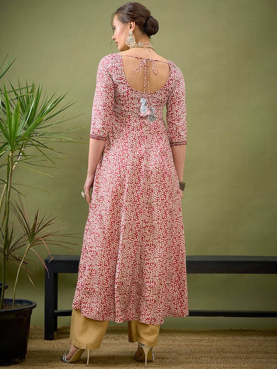 Shae by Sassafras Embroidered Flared Sleeves Round Neck Mirror Work Anarkali Kurta