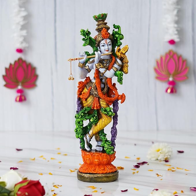 • Package Content - One Handcrafted Polyresin Colorful Standing Lord Krishna Idol Playing Flute Statue