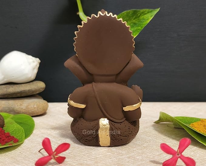 Gold Art India Brown Terracotta Idol for Ganesh Idol for Car Dashboard God for Home Decor
