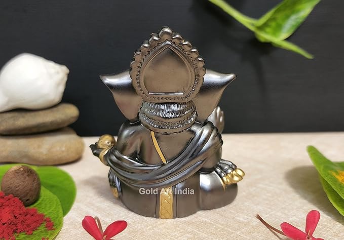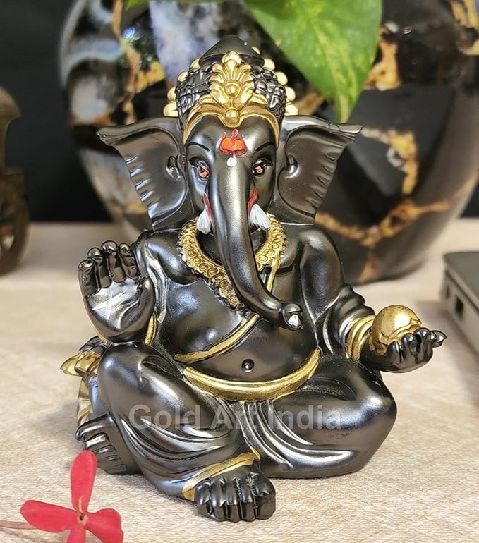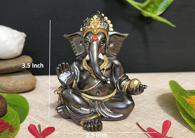 Gold Art India Gaddi Ganesha Idol Magnet Color with Golden Jewelry Perfect for Car Dashboards