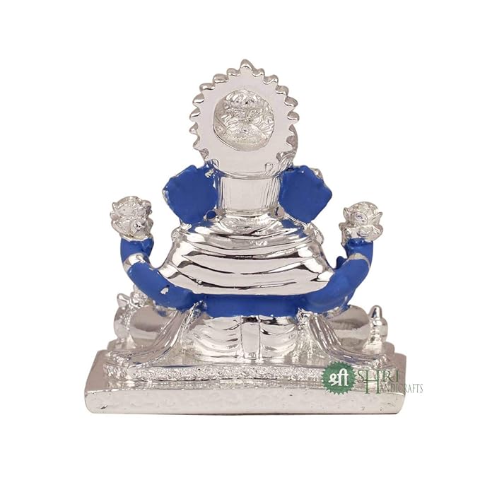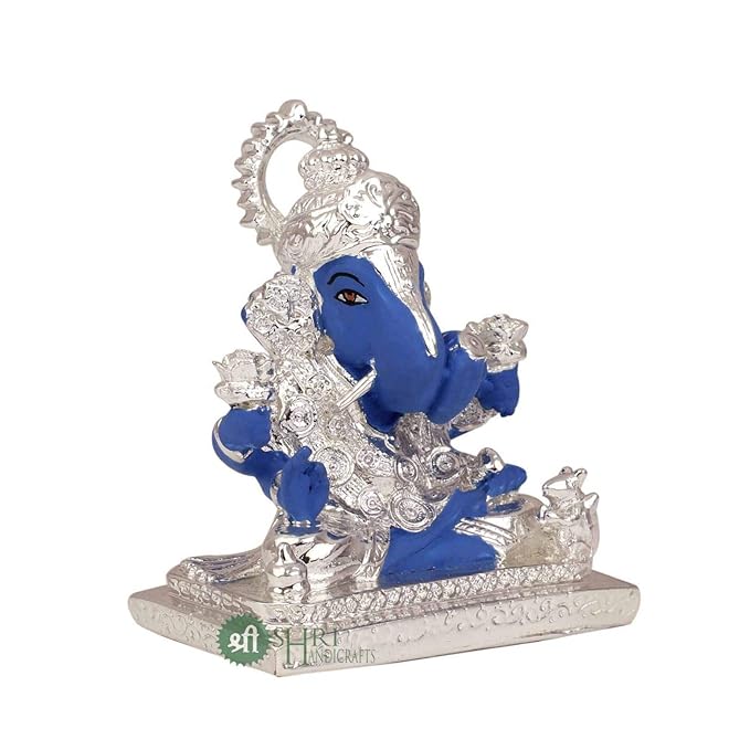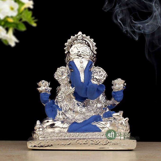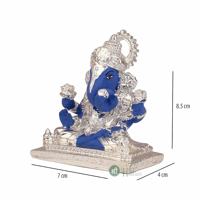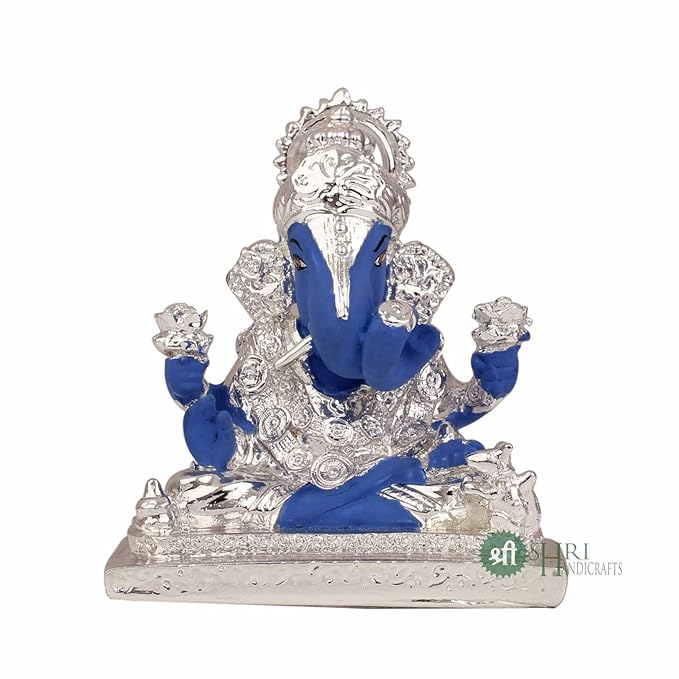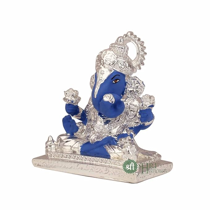 Indicast Lord Ganesha Idol Silver Plated Murti for Good Luck & Success Figurine for Office Home Decor & Gifts | Blue