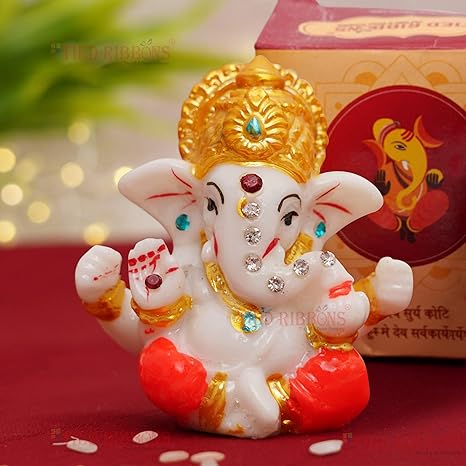 Tied Ribbons Resin Ganesh Idol for Car Dashboard (Multicolor, 6 cm x 5 cm Standard)