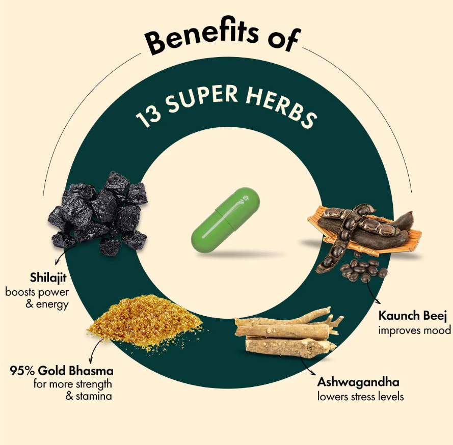 - Low Male Hormone Levels: Shilajit capsules are a natural way of maintaining healthy Male Hormone levels.