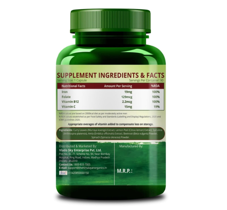• Himalayan Organics Plant Based Iron Supplement Vegetarian Capsule is formulated to enhance the energy levels of the body.