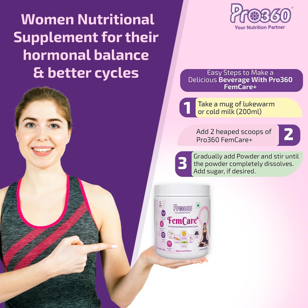 Pro360 FemCare+ PCOS PCOD Women Wellness Nutritional Supplement Powder - 200 gms