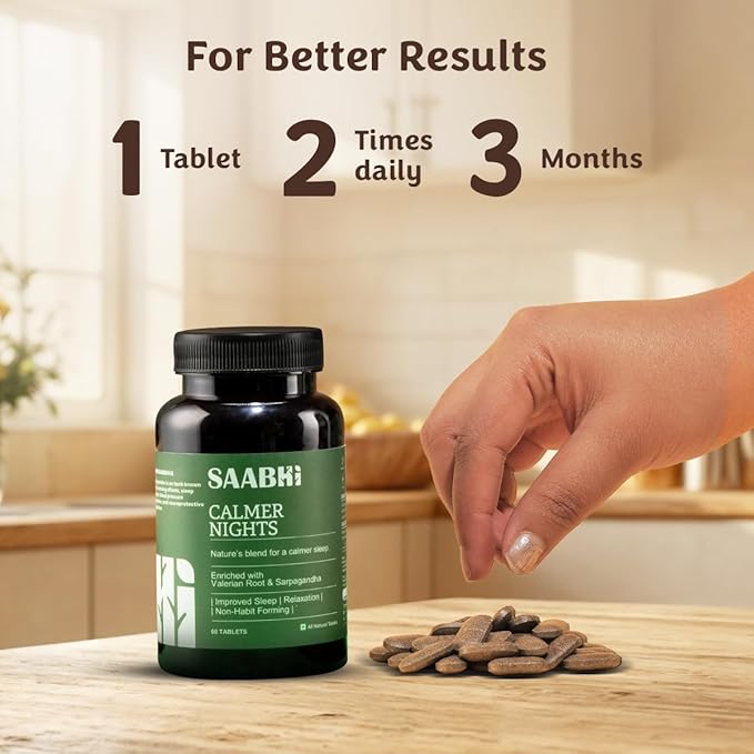 Saabhi Calmer Nights Tablets With Tagara/ Valerian Root 200 Mg - 60 Tablets