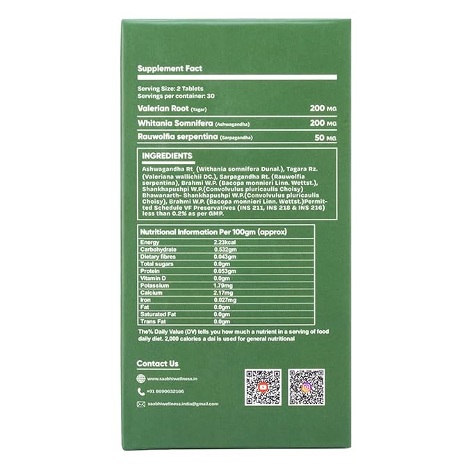 • Promotes Restful Sleep: Saabhi Calmer nights tablets are formulated with 200mg Tagara/Valerian Root, it naturally relaxes the mind and body, supporting restful sleep cycles. These organic sleep tablets work better than any other sleeping pills/sleeping tablets.