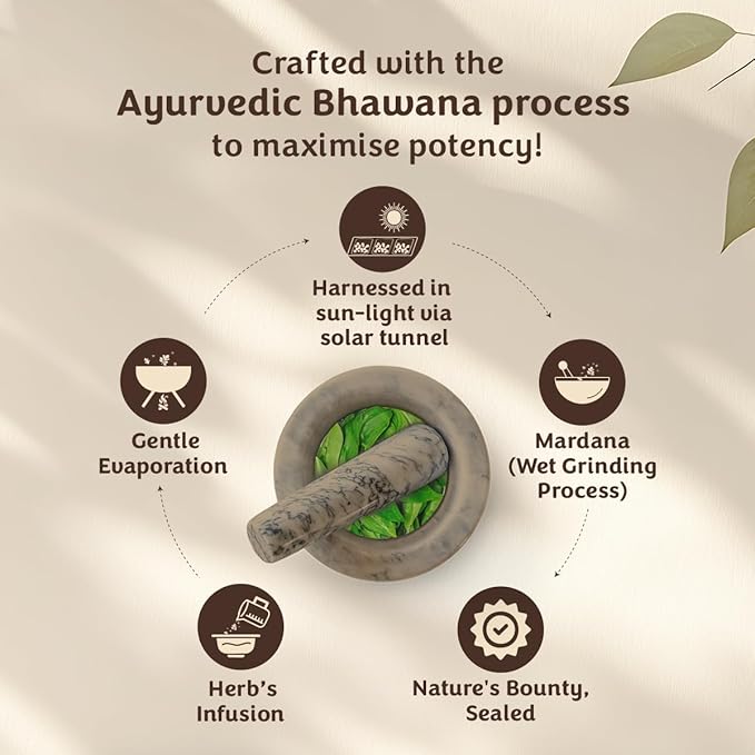 • Reduces Restlessness and Anxiety: Sarpagandha & Ashwagandha helps alleviate stress and sleeplessness, promoting a peaceful state of mind.