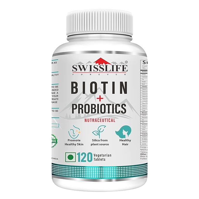 • Comprehensive Beauty Support with the unique formulation of Probiotics: Biotin and probiotics together offer comprehensive support for your beauty. Biotin provides benefits to hair, skin and nails, while probiotics enhance digestion and gut health. This dual-action formula ensures a holistic approach to beauty. By combining Biotin and probiotics, Swisslife Forever provides a well-rounded solution to support your beauty from within and nurture your body's natural radiance.