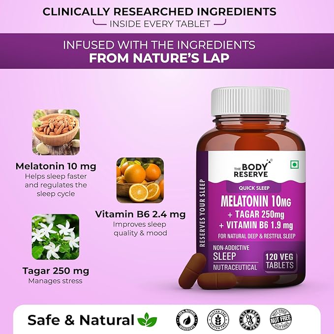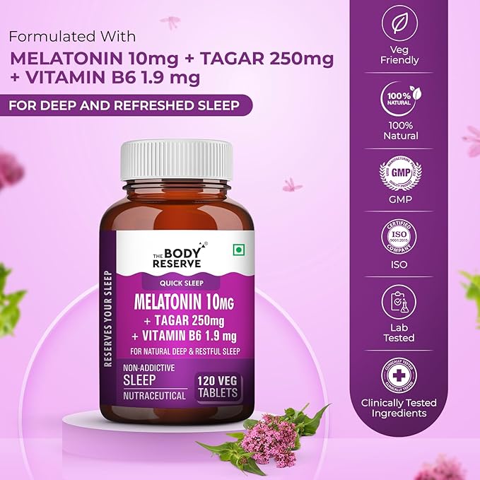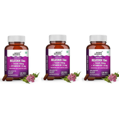 The Body Reserve Melatonin 10mg with Tagar 250mg Each - 120 tabs (Pack of 3)