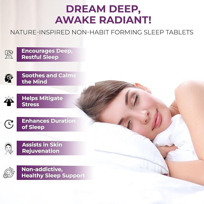 • """ALL-NATURAL SLEEP AID: Our all-natural sleeping aid will do precisely that. Our clinically tested formula induces deep, restorative sleep by using natural ingredients without the risk of dependency."""
