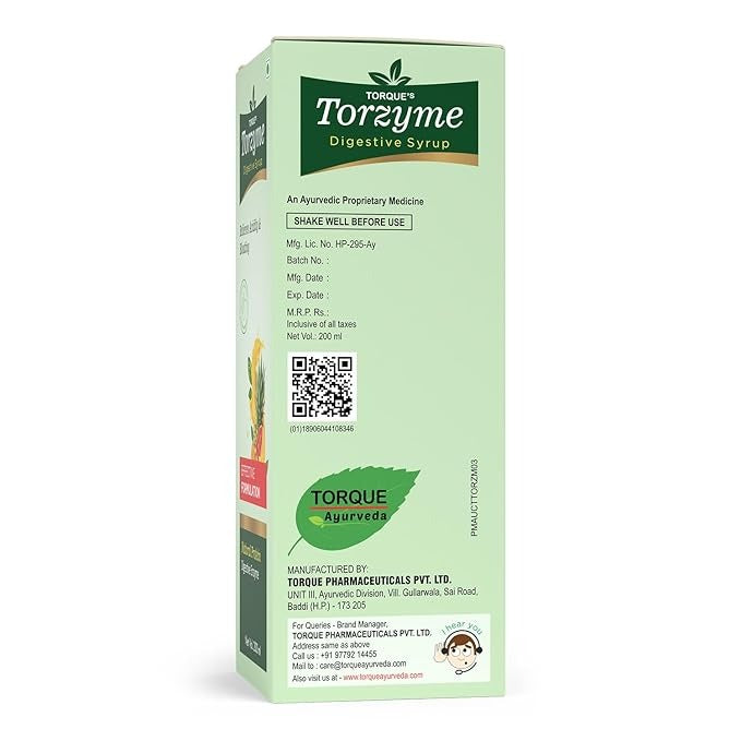• Torzyme Syrup is a herbal syrup that is used to help with digestive problems. It is made with a blend of herbal ingredients that have been traditionally used in Ayurvedic medicine to support digestion