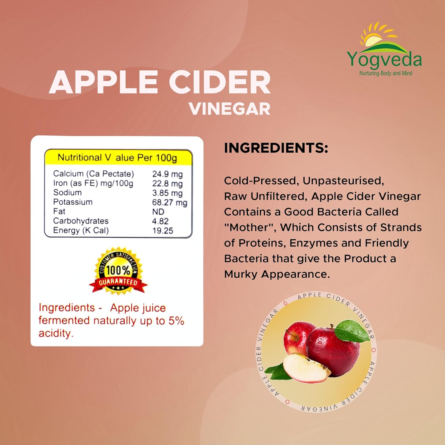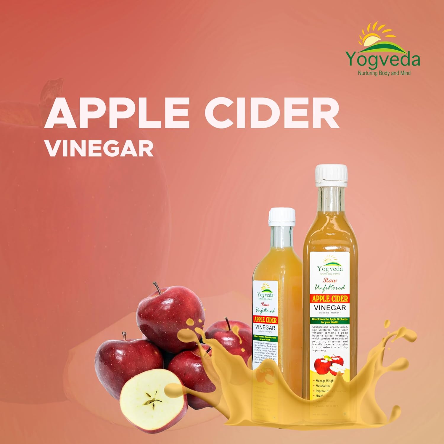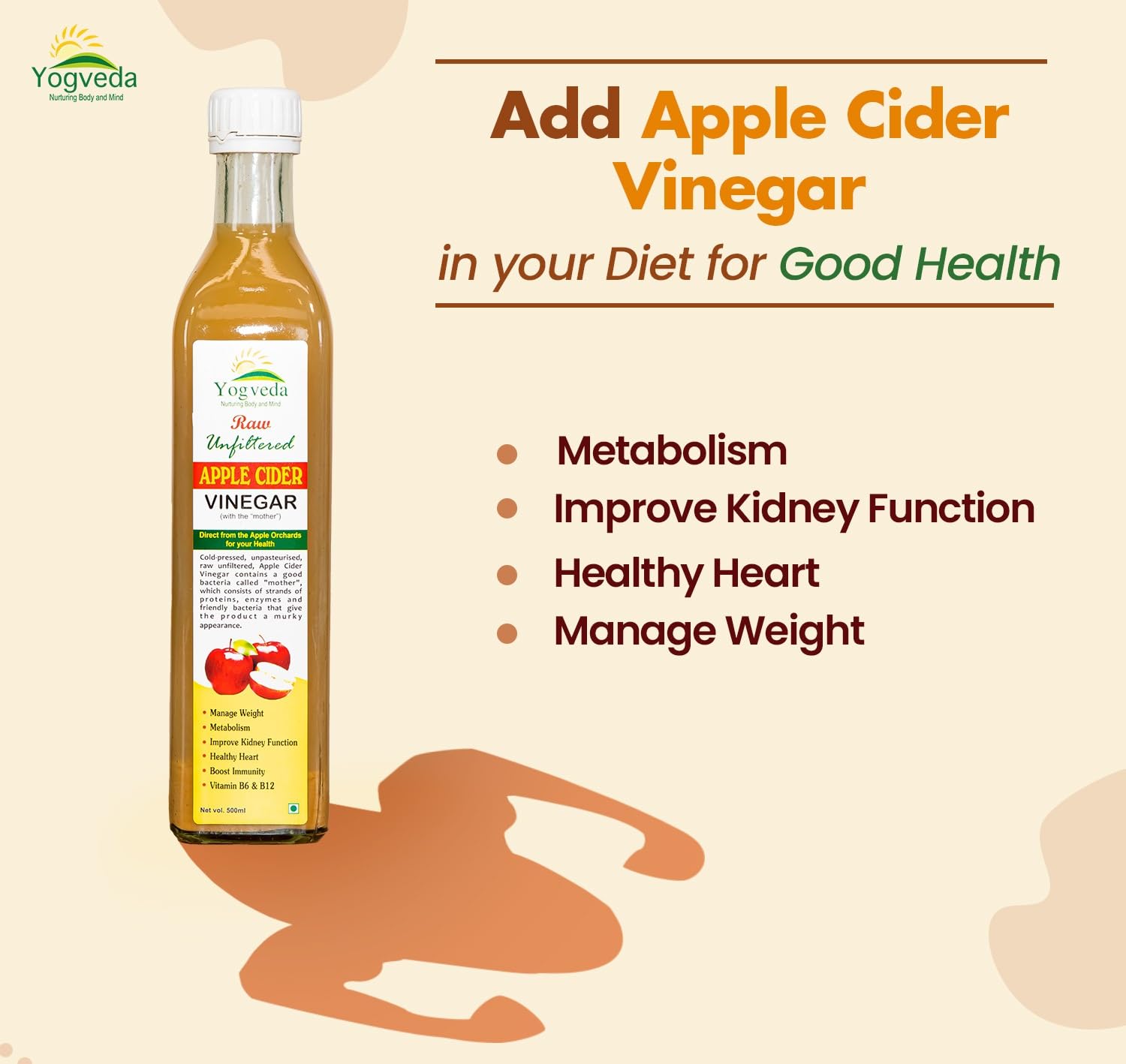Yogveda Apple Cider Vinegar With Mother of Vinegar Raw Unfiltered - 500 ml