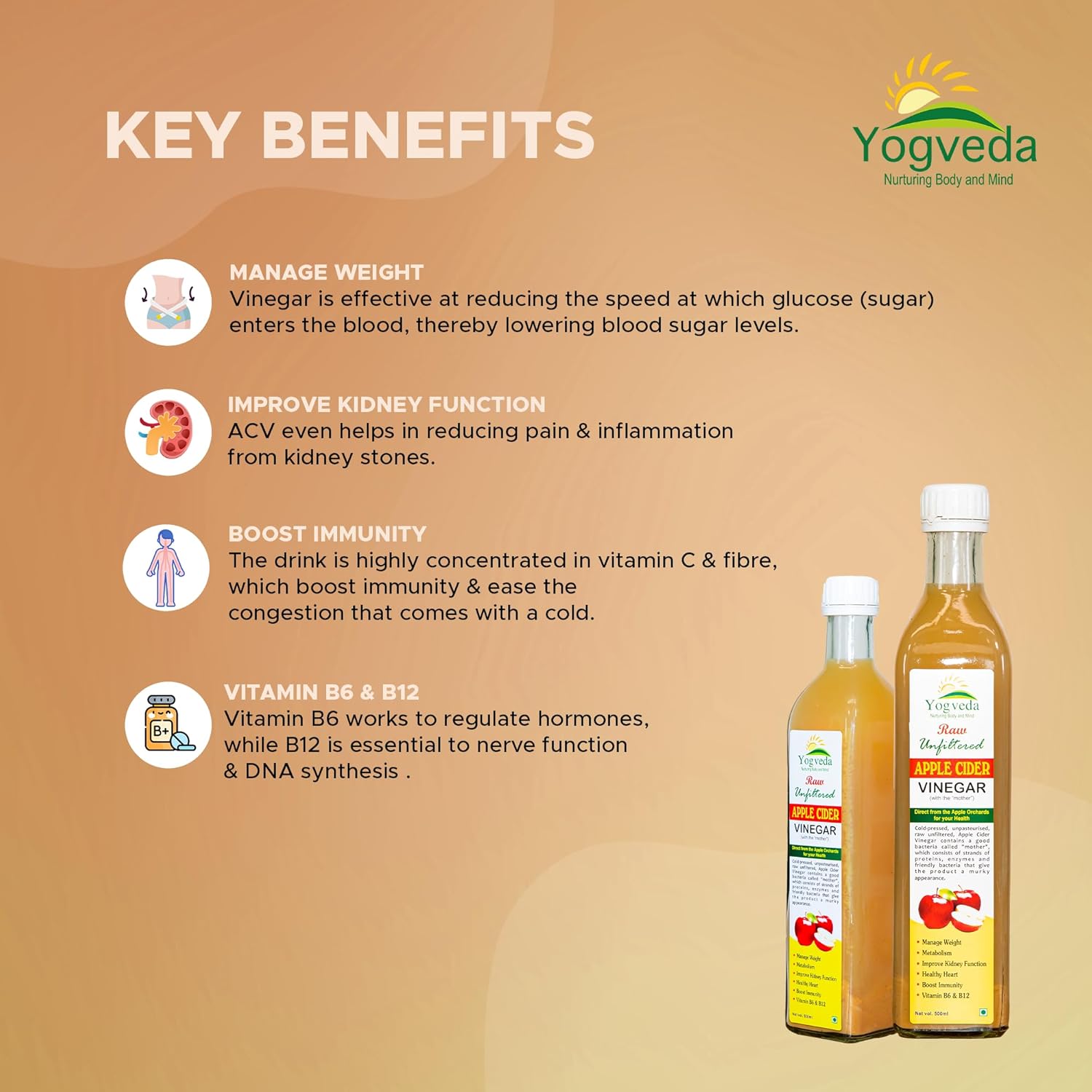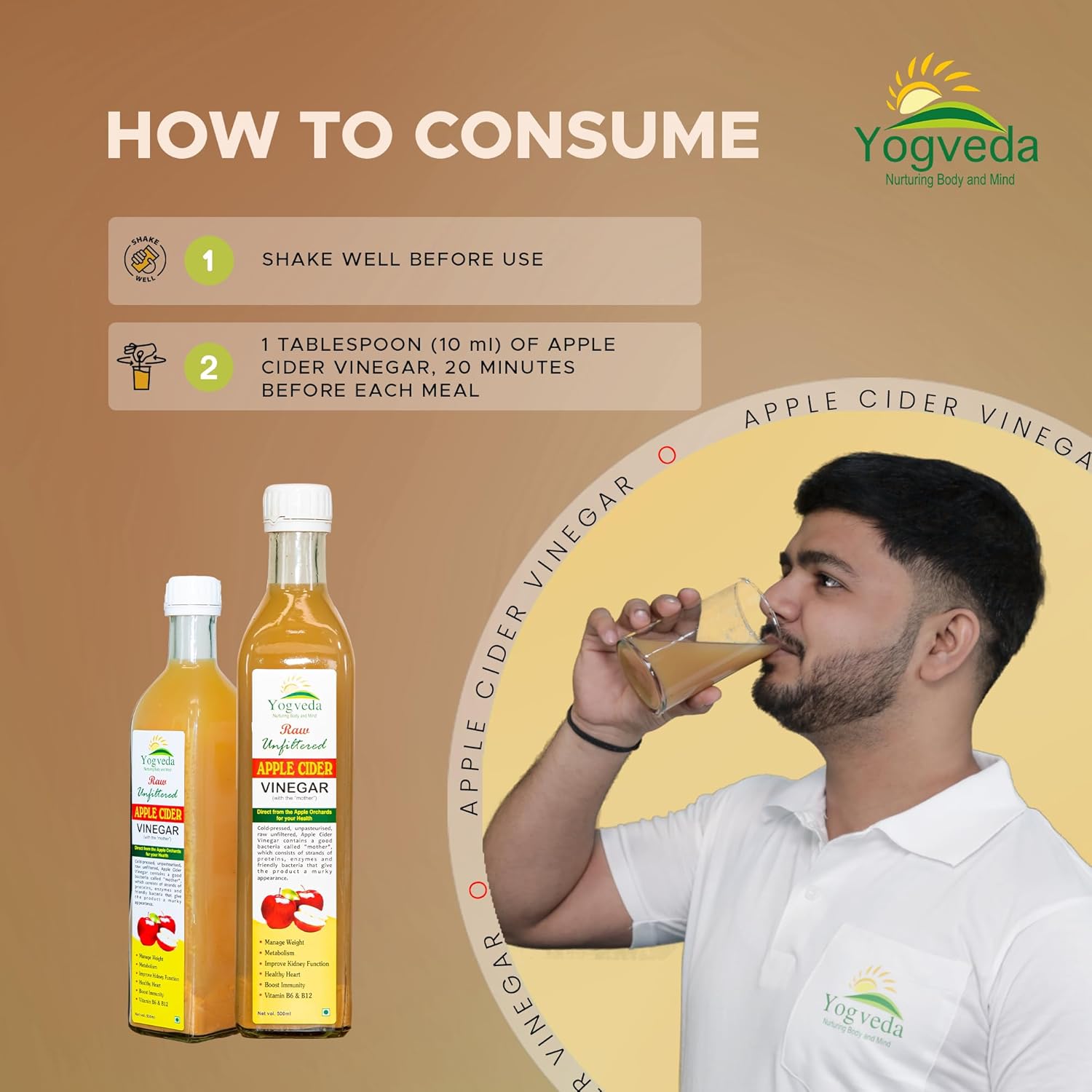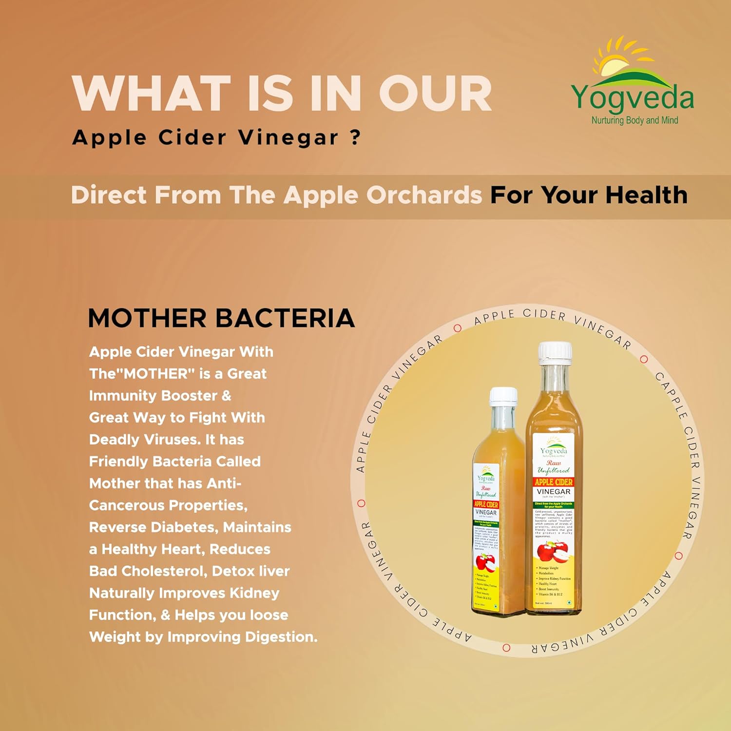 Yogveda Apple Cider Vinegar With Mother of Vinegar Raw Unfiltered - 500 ml