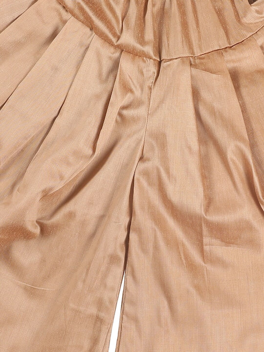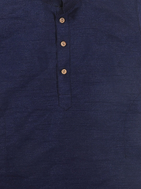 Vastramay Sishu Boys Navy Blue & Golden Silk Blend Kurta with Dhoti Pants