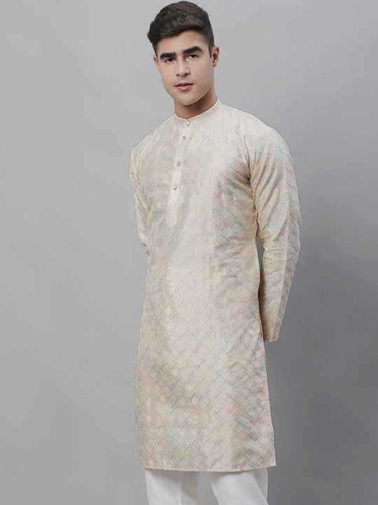 Deyann Men Woven Design Thread Work Cotton Kurta