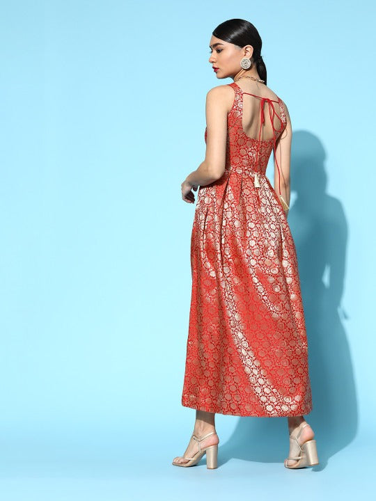 Anayna Women Brocade Balconette Neck Long Dress