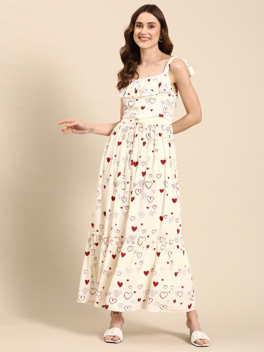 Anayna Conversational Print Crepe A-Line Tiered Maxi Dress