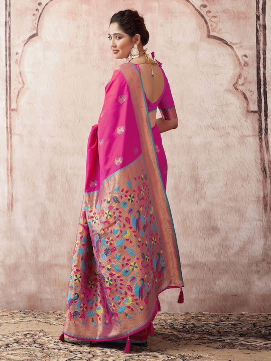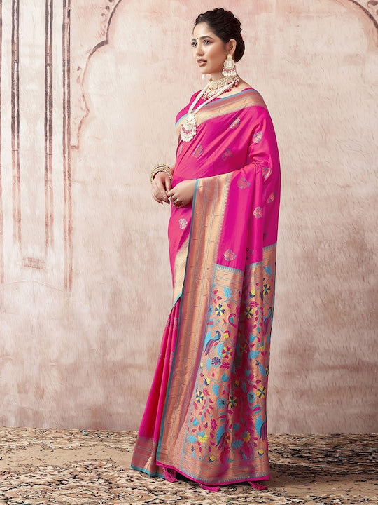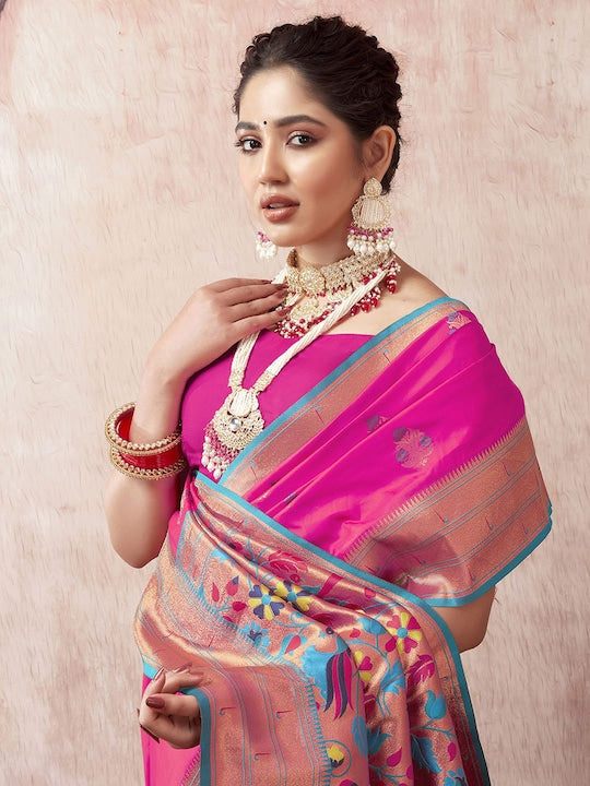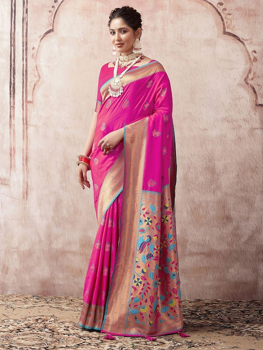 Satrani Ethnic Motifs Woven Design Zari Paithani Saree