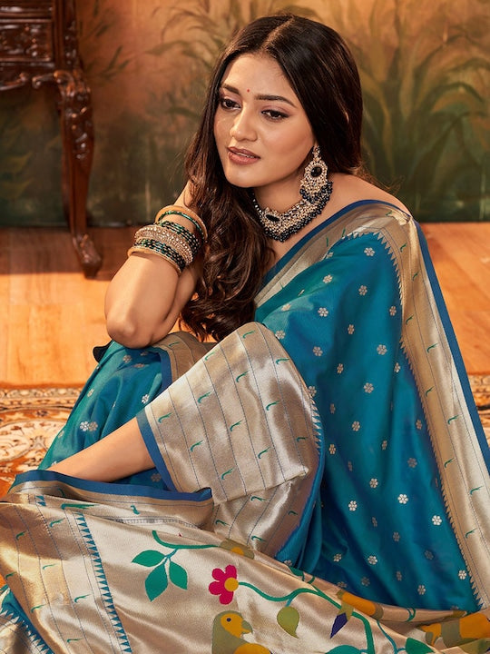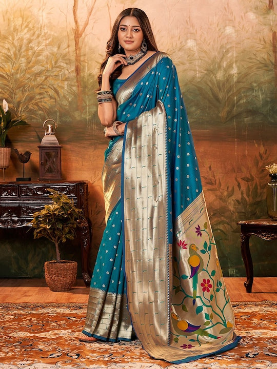 Satrani Ethnic Motifs Woven Design Zari Paithani Saree