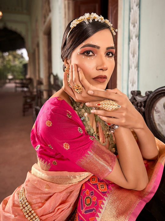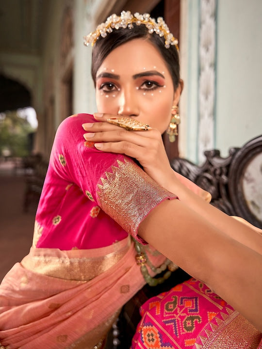 Pink and red banarasi saree