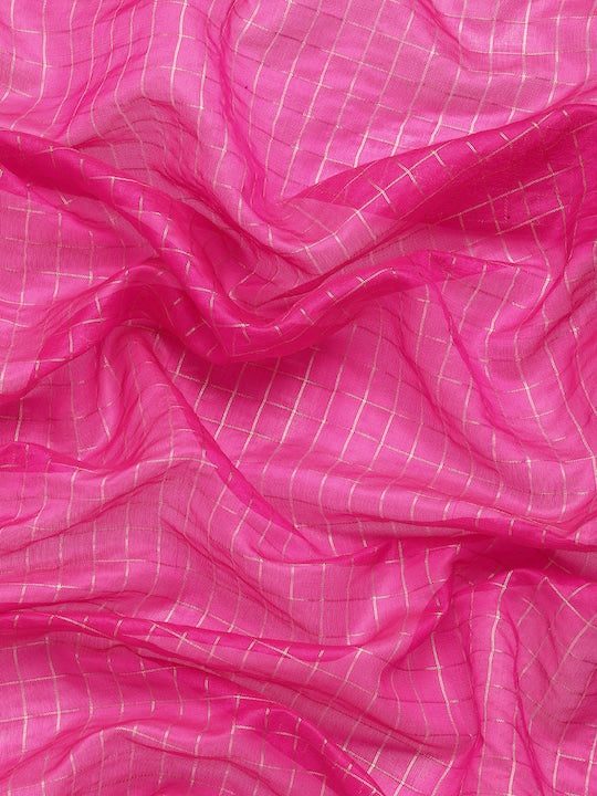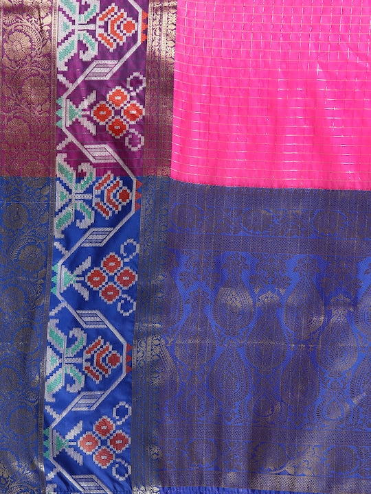 Silk Land Checked Zari Banarasi Saree