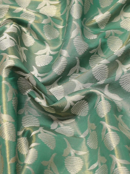 • Green and orange banarasi saree