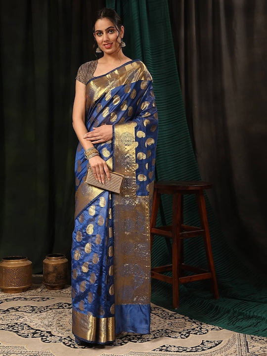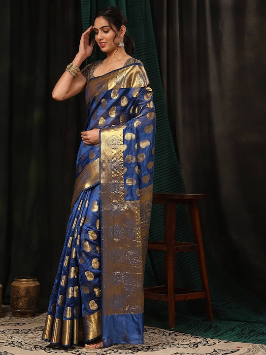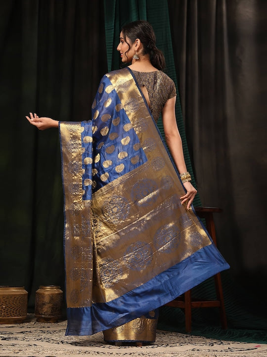 Silk Land Woven Design Zari Silk Blend Banarasi Saree